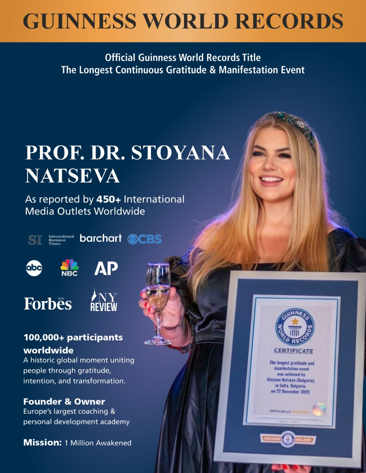 Happy Life Academy обявява официалното си признание от Guinness World Records за най-дългото събитие за благодарност и манифестиране, сертифицирано след…