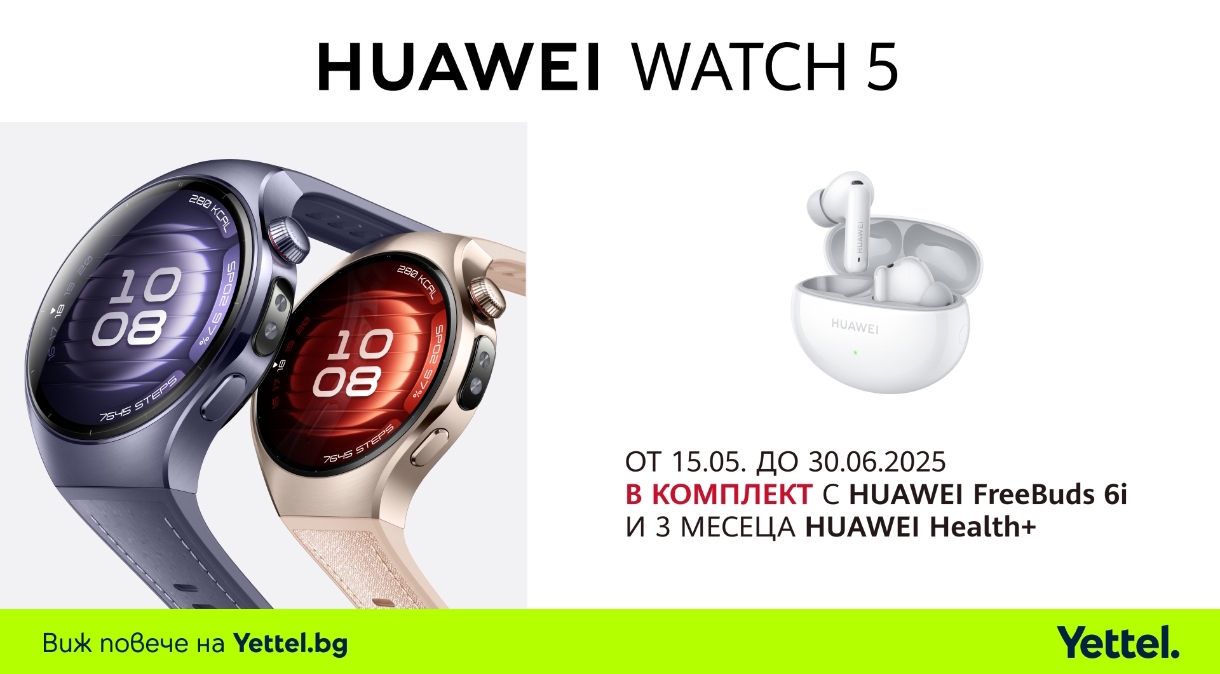 До 30 юни HUAWEI Watch 5 и FIT 4 Pro се продават с безжични слушалки и безплатен достъп до HUAWEI…