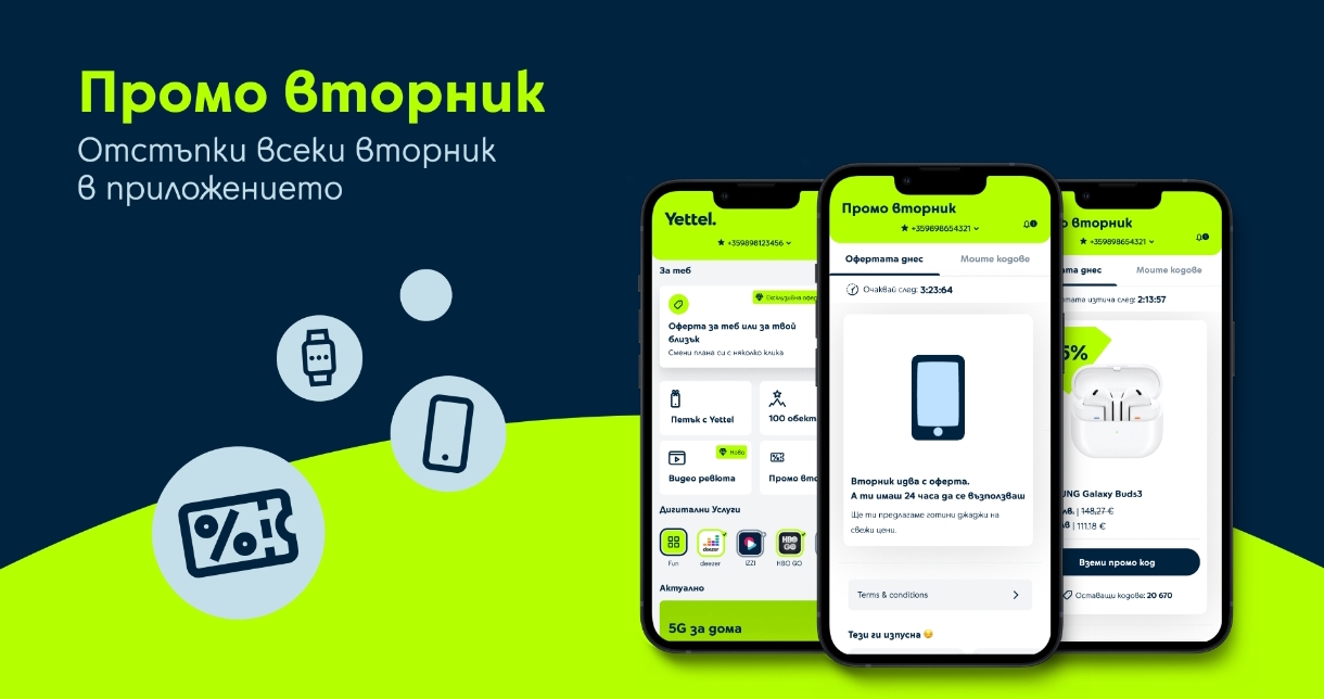 С инициативата „Промо вторник“ Yettel продължава да предлага на своите клиенти ексклузивни оферти, достъпни единствено в мобилното приложение на оператора.…