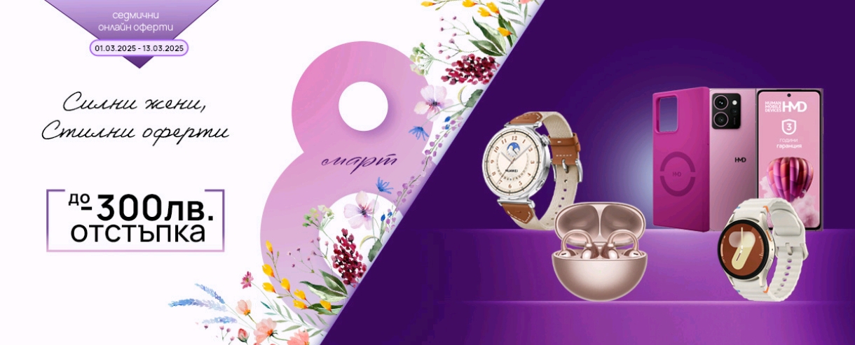 По случай Международния ден на жената Vivacom предлага стилни оферти с отстъпки до 300 лв. на смарт устройства специално за…