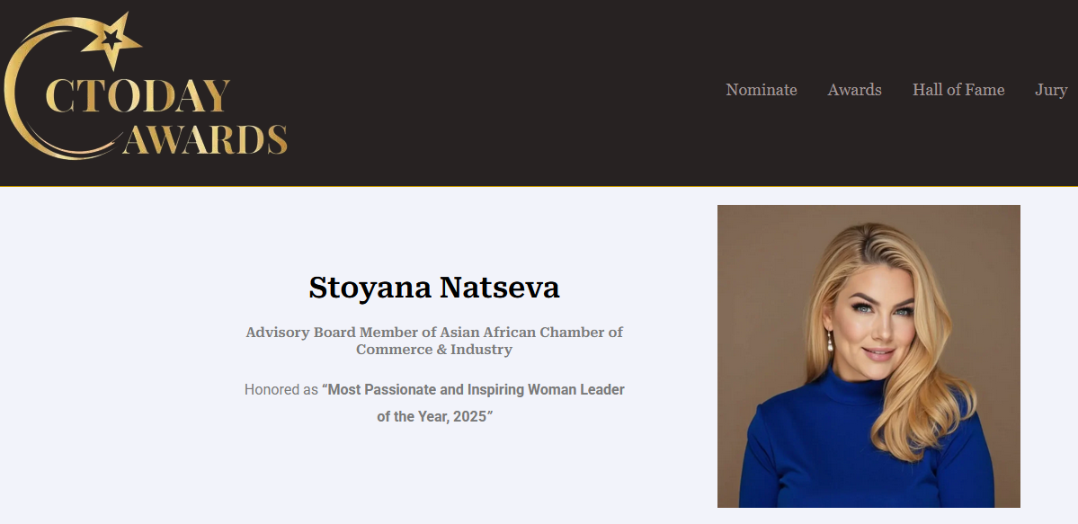 Стояна НацеваЧлен на Консултативния борд на Asian African Chamber of Commerce & Industry Отличена като „Най-вдъхновяващ и отдаден женски лидер…